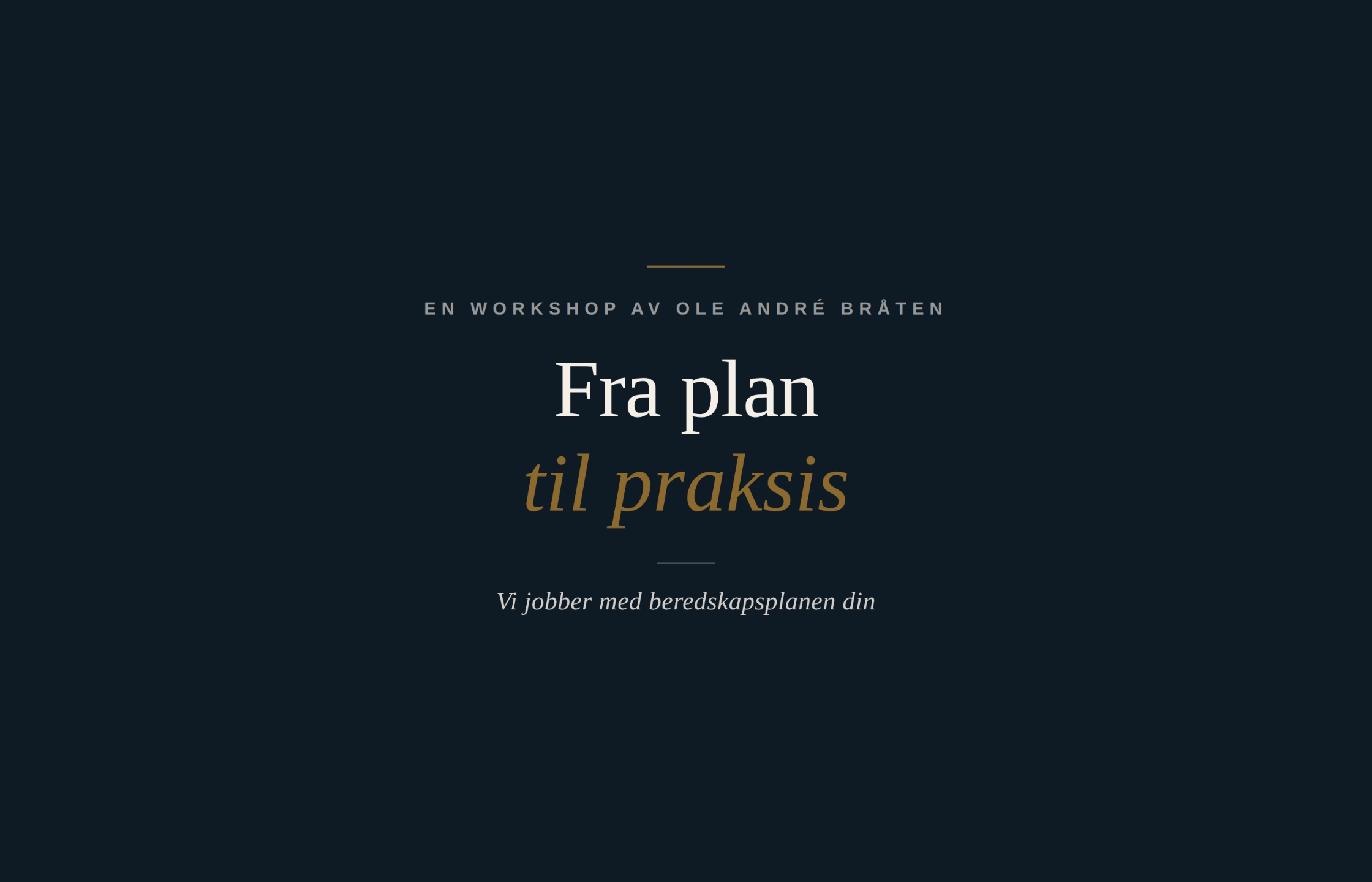Målet er ikke å ferdigstille hele beredskapsplanen i løpet av workshopen, men å etablere et tydelig og praktisk fundament for det videre arbeidet.